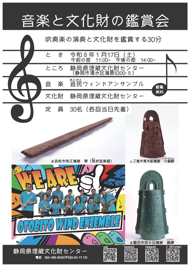1月17日(土)、静岡市を拠点に活動する市民吹奏楽団「音民ウインドアンサンブル」をお招きし「音楽と文化財の鑑賞会」を開催します!