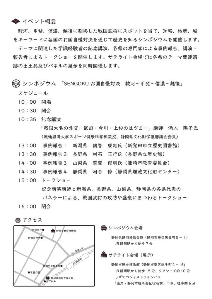 2月21日(土)シンポジウム「SENGOKU お国自慢対決」開催のお知らせ