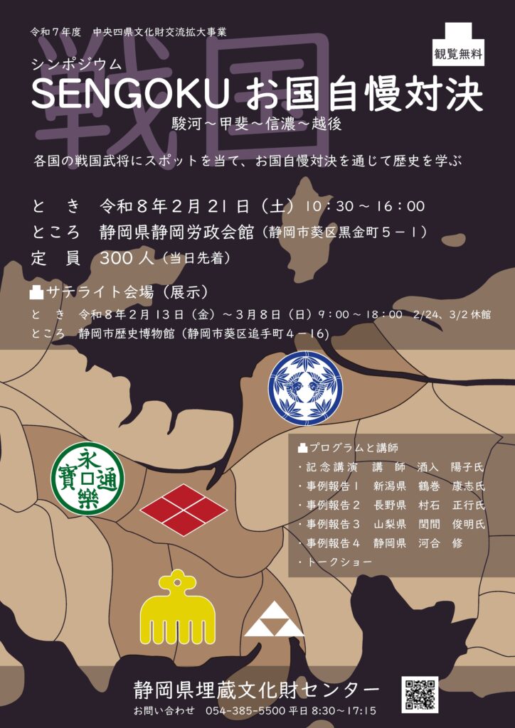 2月21日(土)、静岡県静岡労政会館にて、駿河、甲斐、信濃、越後の戦国武将にスポットを当てたシンポジウムを開催します!それぞれの「推し」武将を取り上げ、いろいろな切り口で戦国時代を語ります。